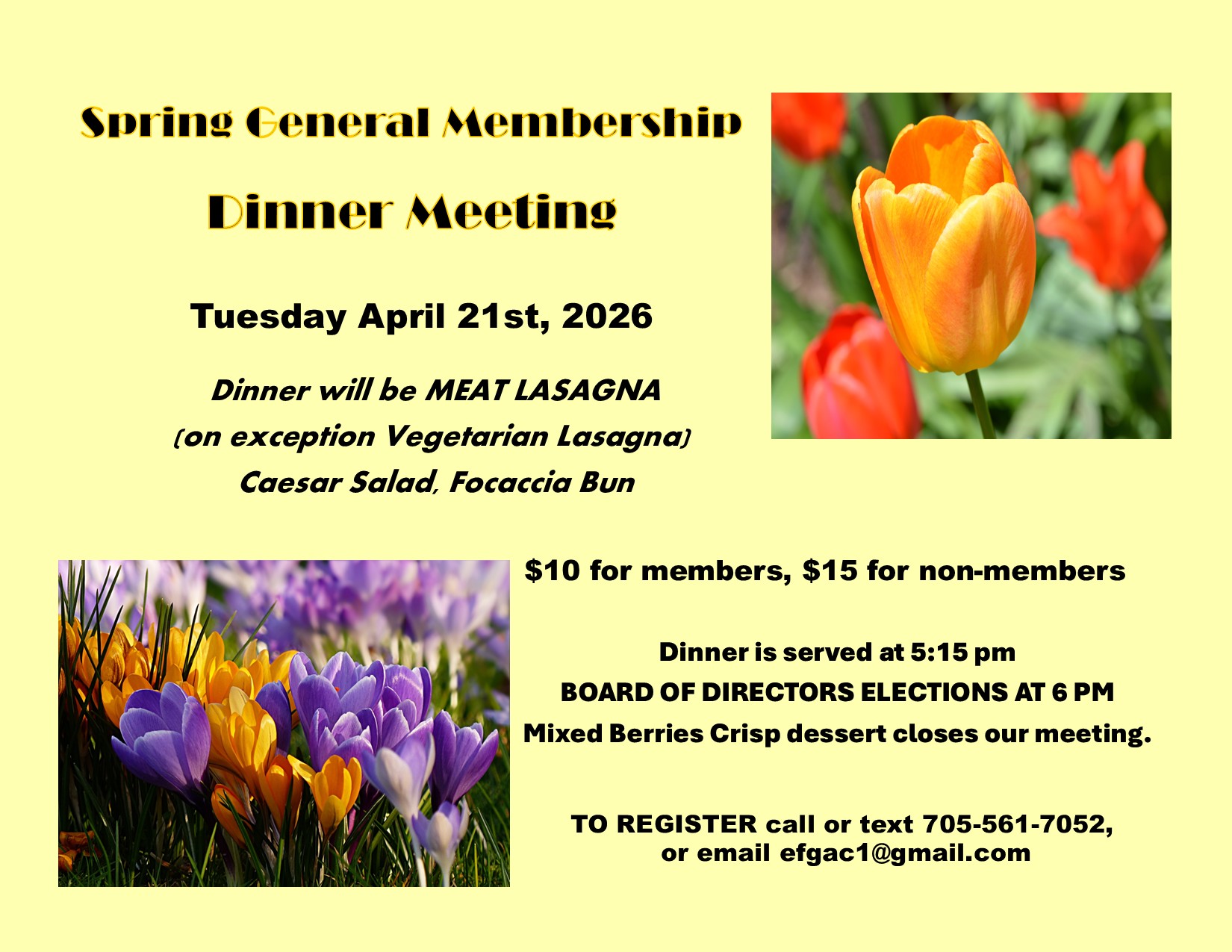 Must register by calling 705-561-7052 or texting efgac1@gmail.com
